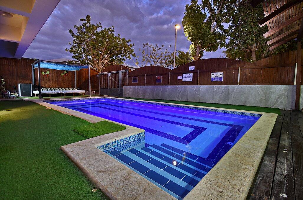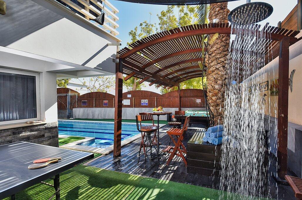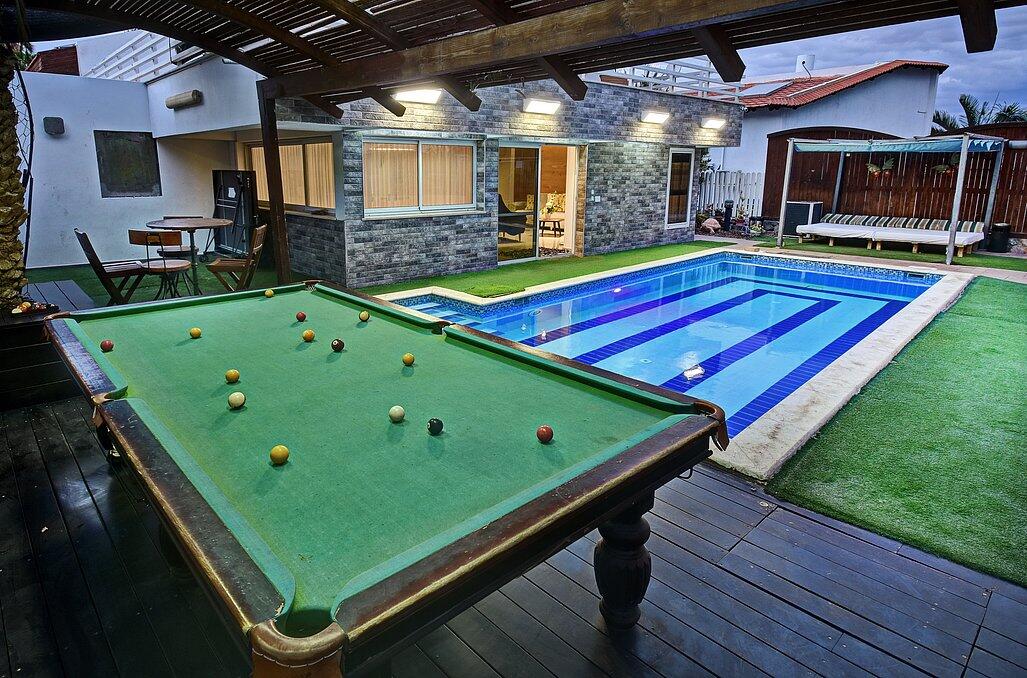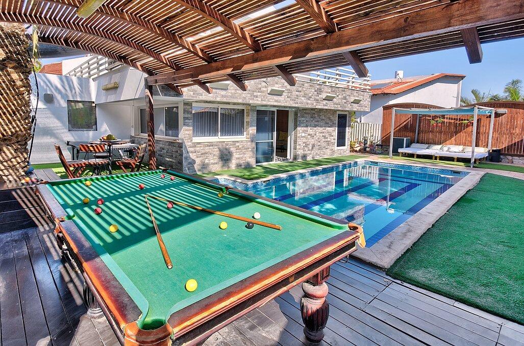 נופש יוקרתי באילת? וילה דולב היא המקום המושלם עבורכם! וילה דולב מזמינה אתכם לאירוח ברמה גבוהה בוילה מפוארת עם 6 חדרי שינה, בריכת שחייה גדולה ומגודרת, ג'קוזי ספא מפנק, אווירה כיפית ושלווה. הוילה מתאימה למשפחות, זוגות וקבוצות עד 15 איש