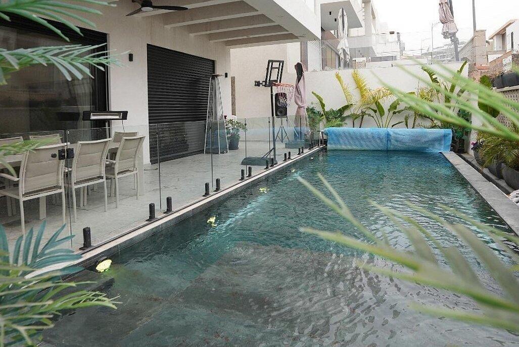 במתחם החיצוני תיהנו מבריכה פרטית צלולה, מטבח חוץ עם מנגל גז, מקרר וכיור – מושלם לבילוי משפחתי.