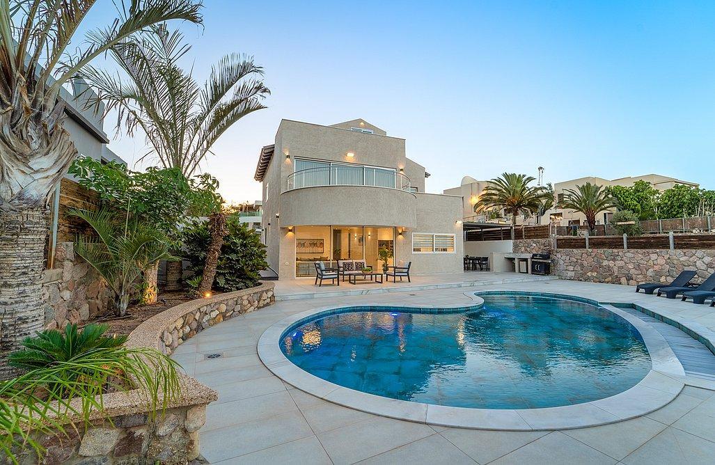וילה seven אילת, לנופש מפנק וחלומי למשפחות וזוגות, בוילה יוקרתית ומפוארת במיוחד. בוילה תהנו מ6 חדרי שינה המעוצבים במודרניות רבה עם הקפדה על הפרטים הכי קטנים, כאשר לכל חדר מסך צפייה