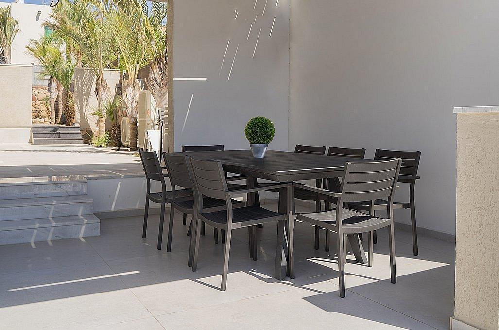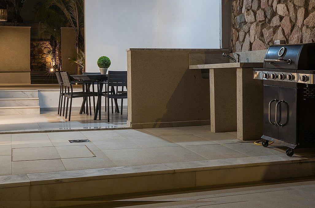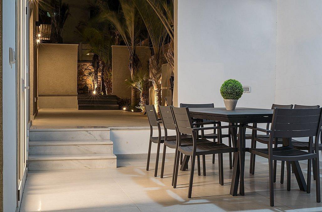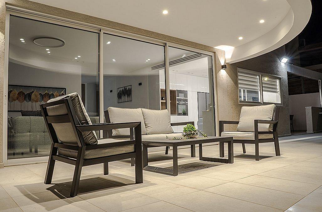 מיזוג אוויר ושידות, מטבח גדול מאובזר, סלון יוקרתי עם מסך צפייה ויציאה לחצר הכוללת פינות ישיבה, בריכת שחייה צלולה ומחוממת, פינת ברביקיו ותאורה לילית.