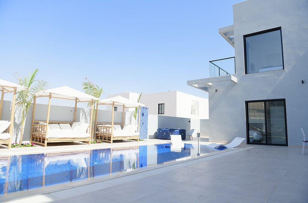 בוילה ישנה בריכה בנויה, ג'קוזי ספא, עמדת מנגל גז, פינות שיזוף שולחנות משחק וכמובן מטבח פנימי מאובזר לחלוטין, 6 חדרי שינה ומרחבי ישיבה משותפים המתאימים לערבים משפחתיים.