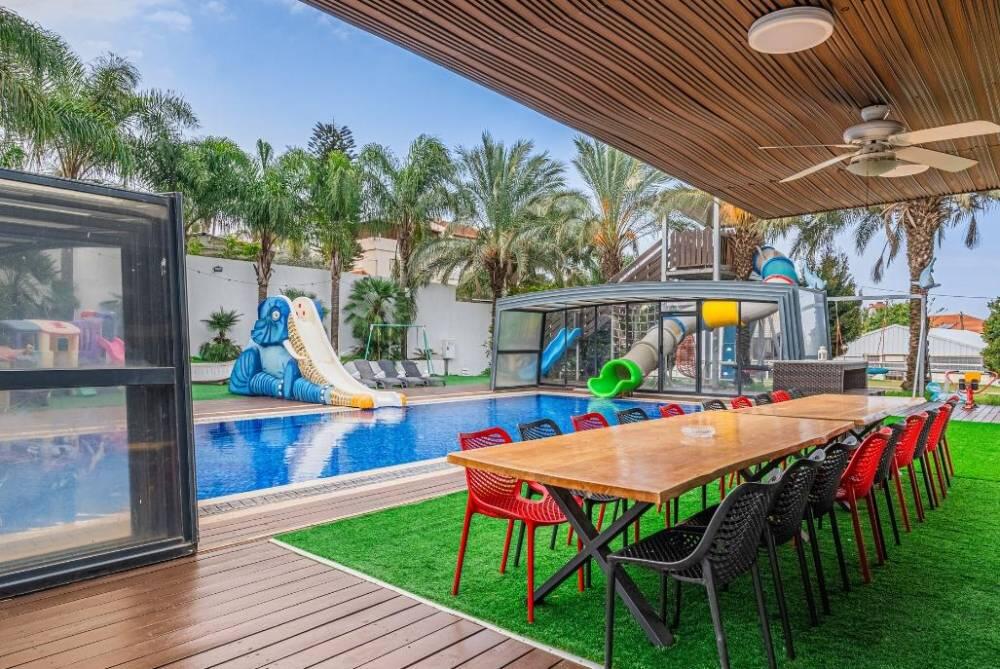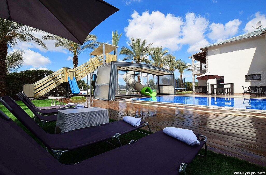 אם אתם מחפשים נופש איכותי ומפנק, וילה קאסה רויאל היא הבחירה המושלמת עבורכם! אחוזת נופש יוקרתית שמציעה את כל מה שצריך לחופשה בלתי נשכחת. הוילה כוללת 7 חדרים ומפנקים, בהם תיהנו מפרטיות ונוחות מוחלטת. במתחם החיצוני של הוילה תמצאו בריכת שחייה ענקית ומחוממת, עם מגלשה ישירות למים, ג'קוזי ספא מפנק, ושפע של משחקי שולחן כמו פינג-פונג ושולחן כדורגל. בנוסף, במתחם החוץ תיהנו מאטרקציות לילדים כמו טרמפולינה, נדנדות, מגלשה וקיר טיפוס, לצד פינות ישיבה מרגיעות, מיטות שיזוף וערסלים.