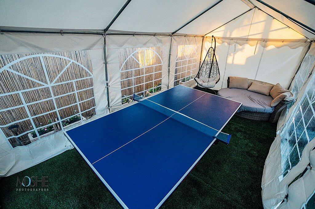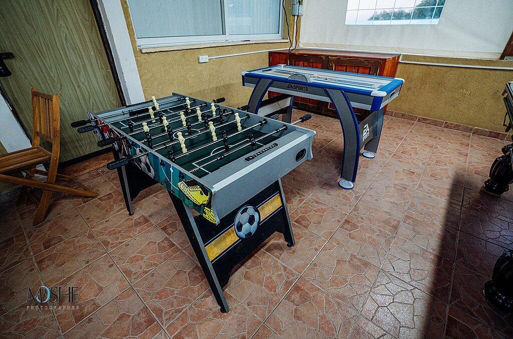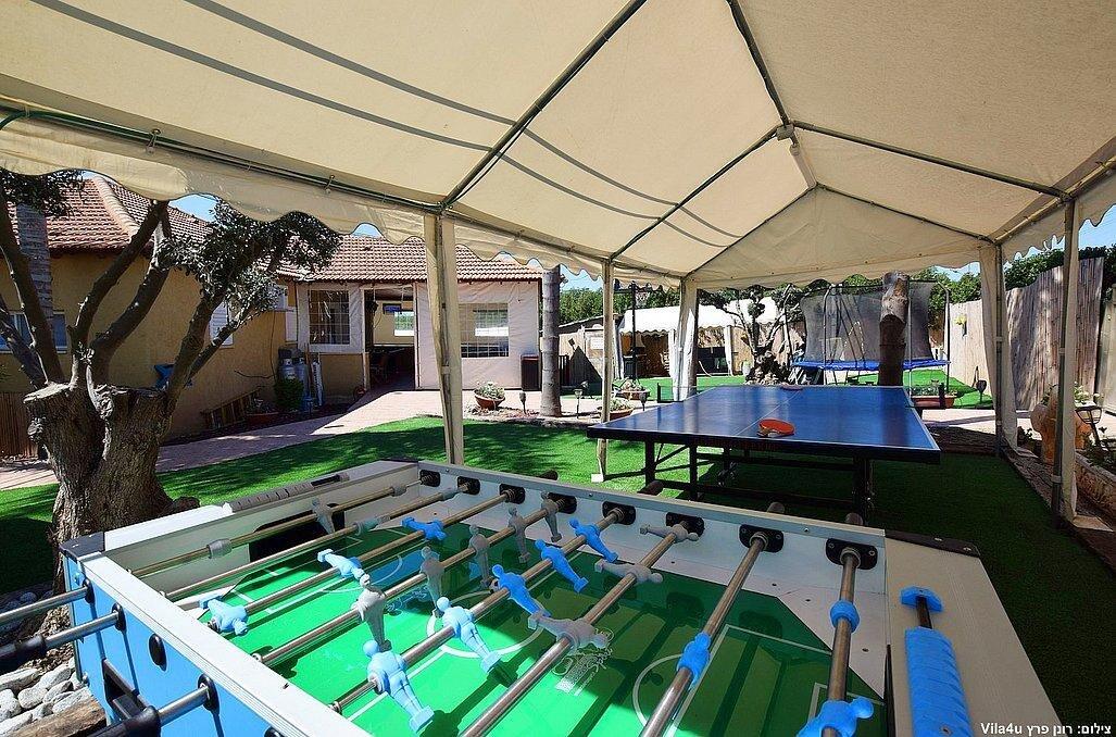 שולחנות משחק להנאת המתארחים הכוללים הוקי אוויר, פינג פונג ושולחן כדורגל. חצר מטופחת עם עמדת BBQ, בריכה מחוממת ומקורה פרטית, חניה צמודה ואבזור עם חשיבה על כל הפרטים הקטנים לחופשה מושלמת וחסרת דאגות