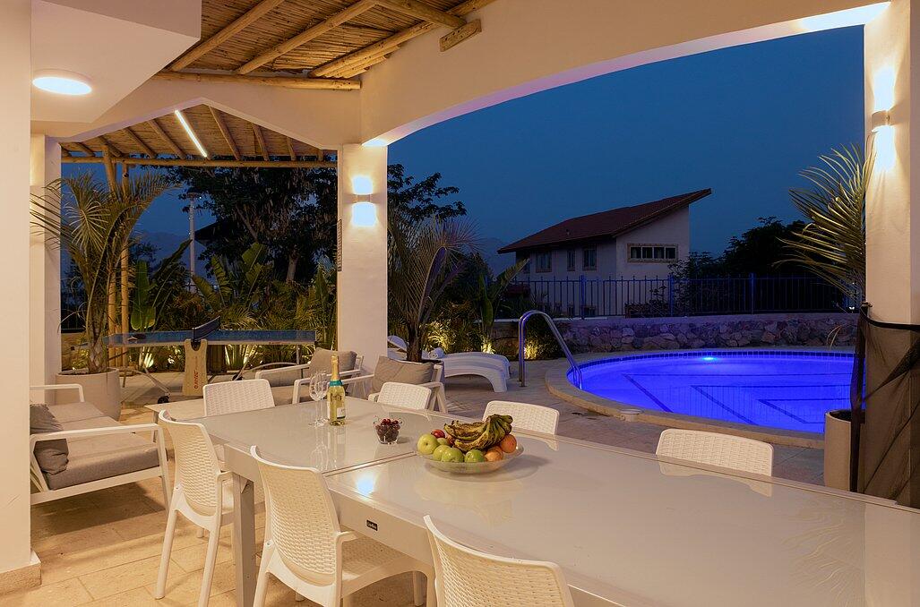 וילה אוטופיה המדהימה ממוקמת בעיר אילת ונותנת לכם מענה על החופשה שתמיד חלמתם עם מתחם חיצוני ומיוחד עם בריכה גדולה ג'קוזי ספא מקורה, שולחן בר חיצוני עם מטבח ופינות ישיבה, עמדת מנגל ועיצוב יוקרתי של הוילה