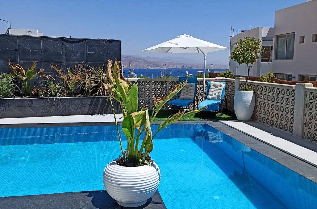 במתחם תהנו מוילה מרהיבה עם 5 חדרי שינה ו5 חדרי רחצה, הוילה מאובזרת בחשיבה על כל הפרטים לחופשה הכי מפנקת שתחוו. במתחם ישנה בריכה מגניבה בנויה מחוממת, ג'קוזי ספא מפנק, מטבח חיצוני עם מנגל גז ריהוט גינה מרשים ונוף מדהים של חופי אילת